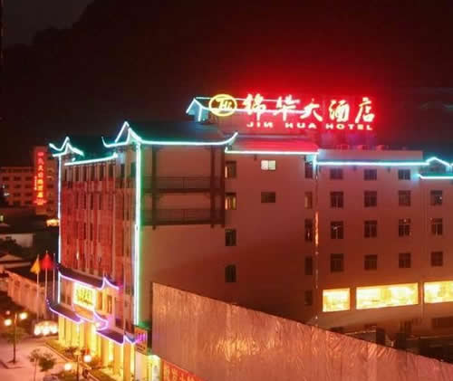 武陵源錦華大酒店是一家按國家四星級標(biāo)準(zhǔn)、2009年5月新修建成的豪華旅游度假酒店,地理位置優(yōu)越,位于武陵源汽車站旁.酒店集觀光旅游、度假、商務(wù)會議、品嘗土家美食等多功能為一體,酒店建筑融合張家界地區(qū)的民族風(fēng)情和建筑文化,是張家界地區(qū)最有土家風(fēng)情的星級酒店之一。