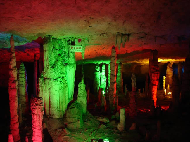 九天洞位于湖南張家界市桑植縣城17公里的利福塔鄉(xiāng),距市區(qū)70公里,距武陵源62公里,因洞內(nèi)有九個(gè)自然天窗九天洞而得名,總面積250公頃,是中國目前發(fā)現(xiàn)的溶洞之最,比號(hào)稱世界第一的利川溶洞大三倍。九天洞內(nèi)空氣清新,冬暖夏涼。整座洞穴分上、中、下三層,有五層不同高度的螺旋式觀景臺(tái),最下層低于地表面400多米。經(jīng)初步探明洞內(nèi)有40個(gè)大廳、3條落差懸殊的陰河、12條瀑布、5座自生橋、10余座洞中山,此外,還有不可勝數(shù)的五光十色的鐘乳石群。在眾多迷人的景觀中尤以九星山、玉宮、水晶宮、九天玄女宮、壽星宮五大奇觀最為著名。