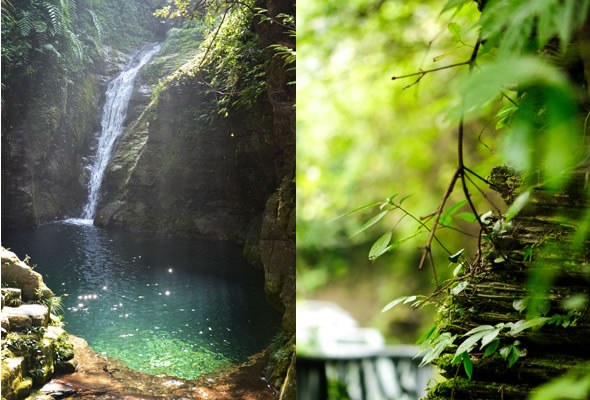 十八潭總名。稍作休憩,我們開(kāi)始奔赴東線的景點(diǎn)。東線主要是以十八潭為主,下游有4潭:合潭、梳妝潭、魚(yú)潭、黑潭;中游有9潭:換衣潭、美人潭、石蛙潭、姊妹潭(3個(gè))、情侶潭(2個(gè))、二龍搶珠,上游有5潭:鬼谷神功(2個(gè))、幽潭、落銀潭(彩虹潭)、路邊潭。十八個(gè)潭深淺不一,淺則1米以上,深則4米左右,形狀各異,有的月牙形,有的豬腰狀,形狀不規(guī)則,石壁上水沖成潭,真是鬼谷神功,此處水質(zhì)細(xì)膩,加之綠林映襯,水色碧綠見(jiàn)底,猶如十八顆翡翠石鑲嵌在山林之間,涓涓溪流晶瑩剔透,飛流直下的瀑布,氣勢(shì)磅礴,蔚為壯觀, 下游的4潭,合潭、梳妝潭、魚(yú)潭、黑潭。合潭是仙女峽谷與十八潭的交匯處;梳妝潭的水清如明鏡,又因?yàn)樘秲蓚?cè)石頭的封閉,使這面鏡子靜止不動(dòng),很方便梳妝,照鏡子。在梳妝潭周?chē),有一種植物屬于紅豆杉系列,它的形狀好似梳子,可以用來(lái)梳頭。魚(yú)潭可不能望文生義。魚(yú)潭,是在冬天的時(shí)候,所有的魚(yú)都聚集在這里過(guò)冬,除此之外,這個(gè)潭水淺見(jiàn)底,冬天魚(yú)苗聚集,是捕魚(yú)的好季節(jié)。黑潭,水深不見(jiàn)底,所以叫黑潭,F(xiàn)在已經(jīng)看不見(jiàn)梳妝潭、魚(yú)潭、黑潭了,你猜為什么?建水庫(kù),建水上樂(lè)園,淹沒(méi)了。 斷魂石的傳說(shuō)。三國(guó)時(shí)期,高氏和蕭氏一對(duì)夫妻春節(jié)忙活,遇上了天門(mén)垮眼,受余震襲擊,打死了丈夫蕭氏。高氏思念丈夫,淚哭不斷,結(jié)果摔死潭中。人們經(jīng)常還能聽(tīng)到哭聲傳來(lái),不敢單獨(dú)行走,需成群結(jié)隊(duì)。后人為了鎮(zhèn)邪,雕刻一條蜈蚣驅(qū)趕哭魂,多年后,蜈蚣成精,天上打雷,巖石發(fā)光,遭雷所劈,成了斷魂石。 和尚姥,也就是丹灶峰,天門(mén)十六峰之一。相傳此峰為仙人化身,赤松子曾在此煉丹,許多詩(shī)人在此留下了美妙的詩(shī)篇,明代葉守禮《丹灶峰》: 懸崖峭壁隔塵寰,上有仙人學(xué)煉丹。 煉得丹成鶴已去,獨(dú)留丹灶在峰巒。 意思是說(shuō),在這險(xiǎn)峻秀麗的山峰上,赤松子潛心煉丹,不受塵世干擾,身心沉醉于秀美的山間,沉溺于丹藥的煉制之中。作者很是羨慕那種與世隔絕的超脫,那種執(zhí)著于自我理想的瀟灑,你羨慕不羨慕? 竹林叢生。我們要學(xué)習(xí)竹子的精神,中空、謙卑;我們要學(xué)習(xí)竹子的精神,抱團(tuán)生長(zhǎng);我們要學(xué)習(xí)竹子的精神,破土而出,節(jié)節(jié)高。 向家塔。打造農(nóng)耕養(yǎng)生游的地方。種田、種菜、種花,農(nóng)家餐館。 爛泥巴根。爛泥巴根和馬桑樹(shù)是同科,是這里獨(dú)特的一種樹(shù)。馬桑樹(shù)亦稱“千年紅”、“馬鞍子”,屬落葉灌木,馬桑樹(shù)多枝叢生,一簇一簇的,枝葉像傘蓋,因此“馬桑樹(shù)兒搭燈臺(tái)”。春風(fēng)一吹,滿山的馬桑樹(shù)、爛泥巴根就吐翠滴綠,顯示出強(qiáng)勁的生命力。打油詩(shī)一首: 青青枝條四方走, 肥肥大葉落上頭, 身在路邊無(wú)人問(wèn), 冬去春來(lái)樂(lè)悠悠。 秋天死亡,春天長(zhǎng)勢(shì)更加茂盛,它的新生是通過(guò)死亡實(shí)現(xiàn)的。山川如此,植物也是如此,這里的一草一木無(wú)不透露著道家那種齊生死、等貴賤的精神。 這叫“常道”亭,“道可道,非常道”,據(jù)說(shuō)是白狐與劉海相遇的地方。吊橋。 十八潭各具特色。 中游有9潭。第五潭叫換衣潭。巖石聳立,霧氣氤氳,巖壁上布滿水汽,猶如雨下。又因過(guò)道狹窄,行人需彎腰通過(guò),未免雨水打濕衣裳,在此就要脫下身上衣物,通過(guò)后在第六潭再穿上。因此第六潭又叫美人潭,很幽深神秘的。第七潭叫石蛙潭,水淺,又比較平穩(wěn)、安全,春天產(chǎn)籽。余音回響,猶如蛙鳴,給人“聽(tīng)取蛙聲一片”的錯(cuò)覺(jué)。 對(duì)面巖壁叫“臘肉鋪”,那條自上而下的溪流叫“酒長(zhǎng)流”,客人來(lái)了,咱土家人熱情,臘肉下炕,苞谷燒,喝兩口! 第八潭第九潭叫情侶潭,比較隱蔽,他倆靜悄悄地談著情話,我們快走,不要打攪他們。 第十潭、十一潭、十二潭叫姊妹潭。下面那個(gè),水淺淺的,溫溫的,是幺妹潭,中間那個(gè)是二哥潭,上面那個(gè)是大哥潭。 潭的旁邊有珍稀植物馬蘭花,馬蘭花又名蝴蝶花、蝴蝶蘭,為多年生宿根草本花卉,根莖短粗,肥壯;ù笮缕妫ㄉk麗,鮮艷奪目;ㄓ兴{(lán)、白、黃、雪青等色;ㄆ5-6個(gè)月,每次花可開(kāi)花7-10天,頗耐觀賞。馬蘭花在我國(guó)栽培已有2000多年的歷史,目前歐、亞、非3洲均有分布,品種極多,難以計(jì)數(shù)。此花按植株高度不同可分3種類(lèi)型:矮株型僅18-25厘米,中株型高25-70厘米,高株型可高達(dá)120厘米。馬蘭花喜陽(yáng)光,適栽于背風(fēng)向砂質(zhì)土壤中。 馬蘭開(kāi)花的童謠。他們?nèi)⒚眯r(shí)候情感深厚,常常一起跳皮筋。大家會(huì)跳嗎?會(huì)唱嗎? 小汽車(chē),滴滴滴,馬蘭開(kāi)花二十一, 二五六二五七,二八二九三十一, 三五六三五七,三八三九四十一, 四五六四五七,四八四九五十一, 五五六五五七,五八五九六十一 ! 還有紅豆杉,像梳頭的篦子,叫“篦子三尖杉”。還有蘭心草,中草藥,空中飄來(lái)蘭花的香氣,山谷中峭壁的蘭花,如芳芳人品善良高雅。蘭花如人品有宜人的香氣,蘭花有撩人的幽香,任何花卉的香氣都不能與蘭花比。這幽香時(shí)隱時(shí)現(xiàn),時(shí
