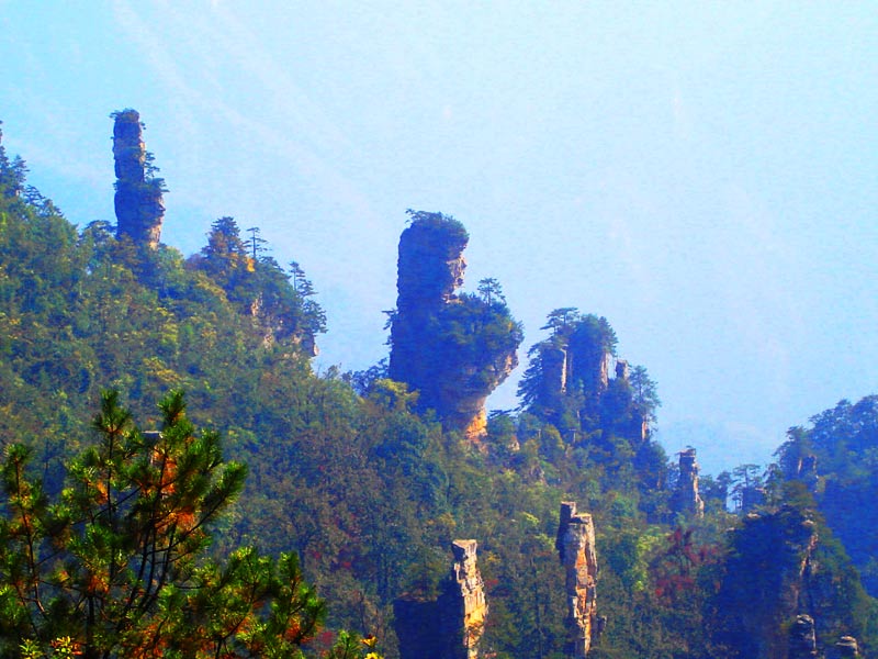 上 午: 旅游車前往中國第一個國家級森林公園——【張家界國家森林公園】(約40分鐘車程,門票245元+5元景區(qū)保險已含)。游覽大氧吧廣場(每立方厘米空氣中含8-10萬個負氧離子),登海拔1200米、張家界最大的凌空觀景臺——【黃石寨景區(qū)】(黃石寨可以乘索道上下,也可以徒步上下。如果選擇乘坐索道,單程65元/人、雙程118元/人自行購買)。黃石寨山頂千山萬壑盡收眼底,沿著山頂環(huán)寨游道行走,可欣賞到許多絕美的自然風光,沿途有六奇閣、摘星臺、雙門迎賓、五指峰、霧海金龜、天然壁畫、黃石松、回音壁、九重壁等景點;