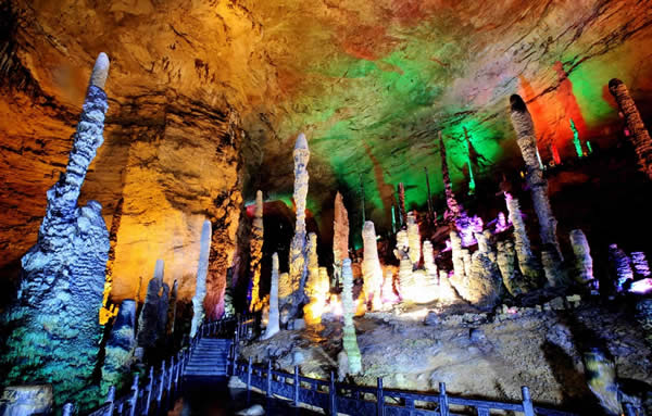 下 午: 游覽地下明珠——【黃龍洞景區(qū)】(門票已含,游覽時(shí)約2.5小時(shí)):黃龍洞享有“世界溶洞全能冠軍”之美譽(yù),2005年被評(píng)選為“中國最美的旅游溶洞”,洞中燈火闌珊、石筍林立,猶如一株株古木錯(cuò)節(jié)盤根、洞中有洞、洞中有河、無奇不有,真乃名副其實(shí)的“地下魔宮”,洞中還有投保一億元的石筍定海神針、響水河、龍王聚會(huì)廳、天仙水、天柱街等著名景點(diǎn)。